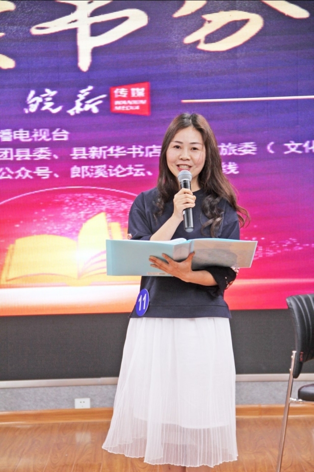 活动中,建平镇选手王一川分享了英国作家毛姆的《月亮和六便士》,讲述了该作品的创作背景和原型人物,以及所展现的在纷繁复杂的社会里,人们追求理想时表现出的恶与美的共存。而广电台选手李健向大家讲述了作家史铁生在《我与地坛》中用饱含哲思的笔开启了我们对于生死的思索:生死本无意义,生死之间的过程才是我们应该追求并为之努力的。“人”的价值与光辉,在“过程”中绽放。分享者中唯一个双人组合,县医院的陈年映和女儿陈桑言以对话的方式,将《呼兰河传》中描绘的中国旧时的社会风貌、人情百态以及封建陋习等内容一一呈现……各位分享者们或慷慨激昂、或平和深沉,将他们对作品的深刻理解以及倾注其中的真情实感,纤毫毕现地展现在现场以及通过网络直播观看的观众面前,令人动容。