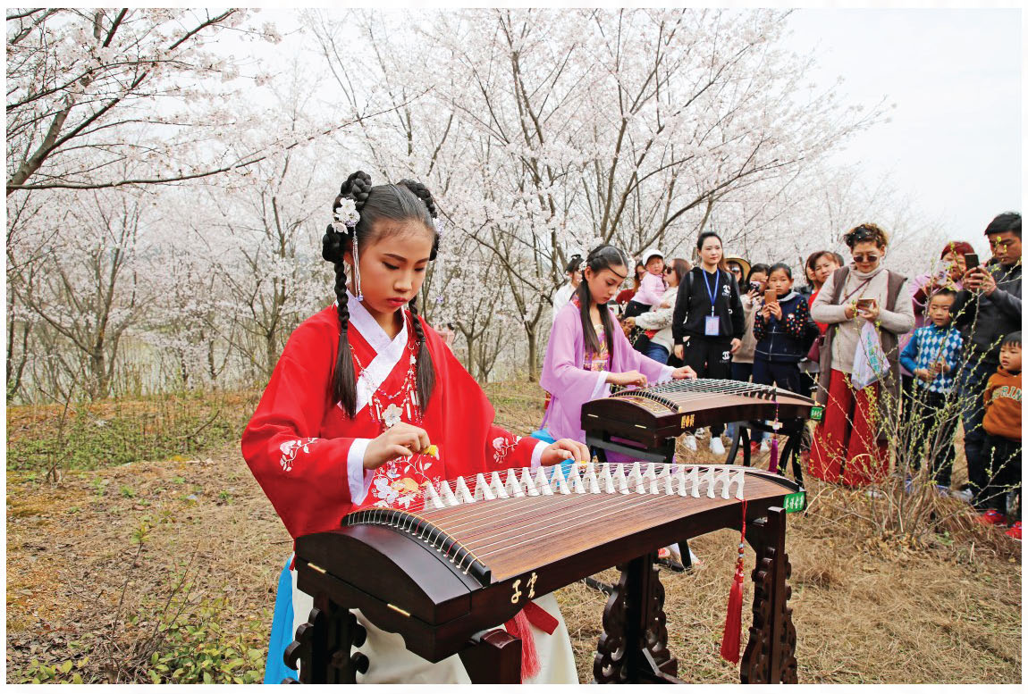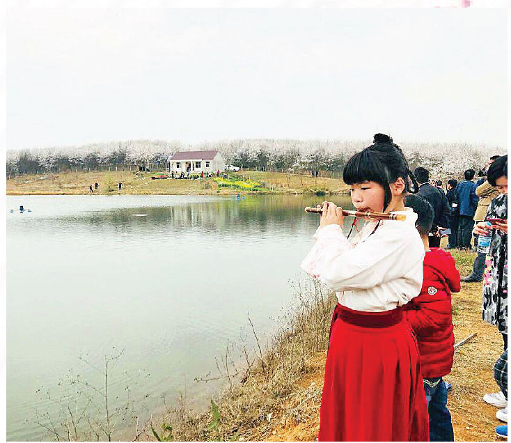 春日的暖阳下洋溢着阵阵花香,美丽的樱花在春风中轻轻摇曳,郎溪也终于有了自己的“樱花大道”